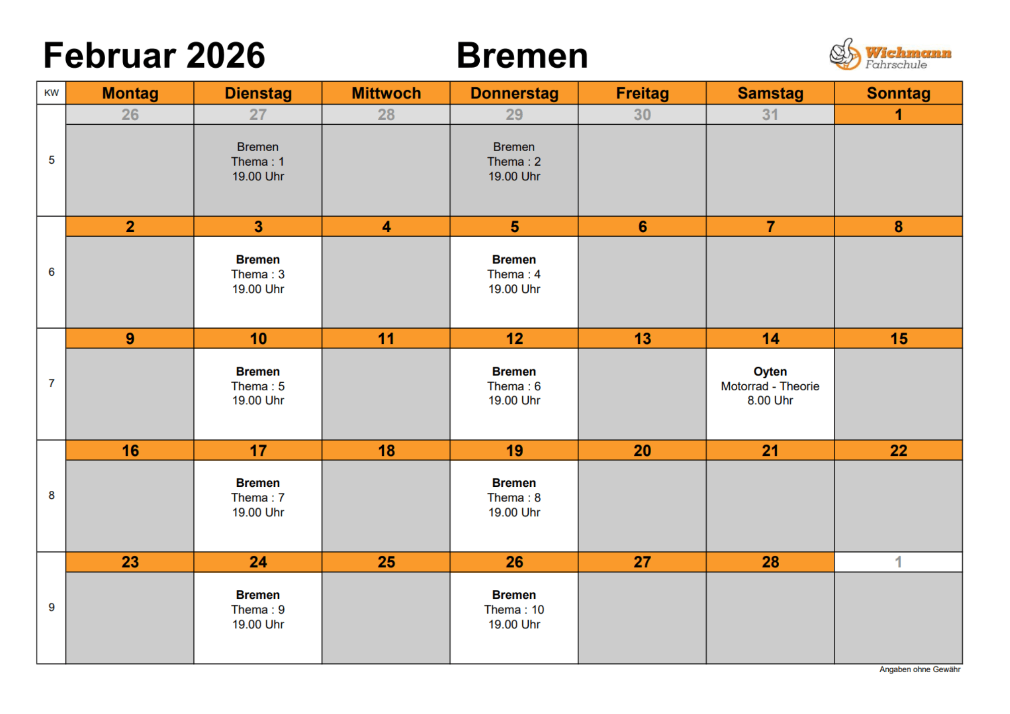 Ihr könnt Eure Führerscheinausbildung selbstverständlich auch JEDERZEIT starten.